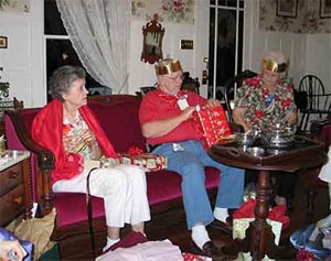 Also around then -- again, the precise sequence of events is hard for me to remember -- my mother talked about moving in with Kerry. She seemed convinced we didn't care for her, even though we saw her all the time. It's just that she didn't remember seeing us, and to her mind it was like we never saw her. We convinced her that we did love her, that moving didn't make sense, and that her life here in Florida was not so bad: she had lots of friends, belonged to a church, saw us all the time. By Christmas of 2006, things were going downhill. If you look at this picture from Christmas of that year.
